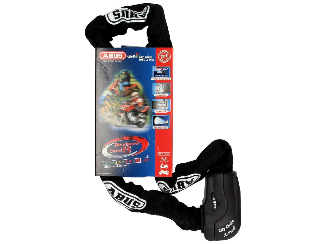 - Typ ABUS Schloss-Ketten-Kombination Granit City Chain X-Plus 1060, Security Level 15, ART Level 3, schwarz, Ø 10 mm, Länge: 1100 mm